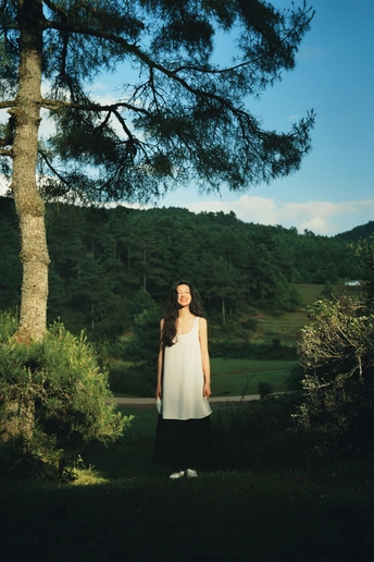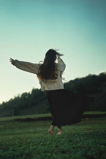 晨光纺出亿万金丝, 缠住她旋转的脚踝发芽; 风卷落樱烙过锁骨, 光斑在颈窝孵出暖雏鸟。 奔跃时—— 发梢甩碎露珠的棱镜, 虹弧刺穿林雾的茧。 🌱 光秧在裙褶间分蘖抽条 🕊️ 草浪托起坠落的羽衣 🌿 新苔正缝合树影的齿痕