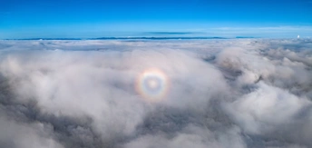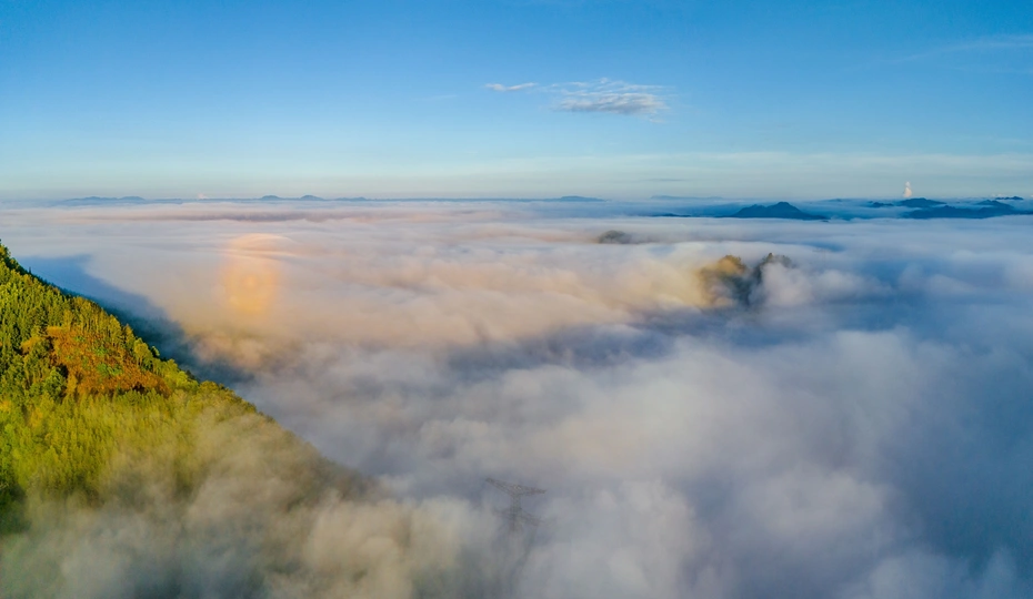 2025年8月17日清晨,贵州省黔西南布依族苗族自治州望谟县G552国道线坝康坡上,天空出现罕见“佛光”奇观,“佛光”、云海、云瀑与“日照金山”的群峰相映成景,美妙绝伦。 “佛光”奇观是一种气象学的独特现象,它的出现要由阳光、地形、云海、大雾等众多自然因素偶然结合才能满足,一般很少能见到这一奇观。国道G552线周边生态环境优越,丰富的植被与独特的气候条件为众多珍稀动植物提供了良好的栖息环境,也为各类自然奇观的形成创造了条件。此次“佛光”奇景的出现,不仅展现了大自然的鬼斧神工,也为这条“中国美丽公路”增添了一份神秘而迷人的色彩。