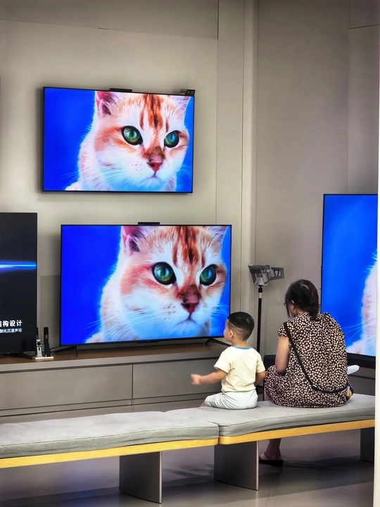 #祎璠纪实# #手机365-3211# 奶奶带娃逛家电店,小家伙被电视里的猫咪牢牢吸引,看得可专注啦,这画面好温馨~