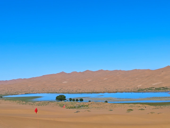 在宁静的湖边,一棵茂盛的大树,正带着一群茁壮的小树,一起生长,一起守护这片蔚蓝的湖泊。