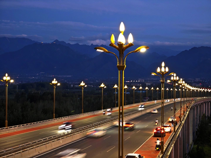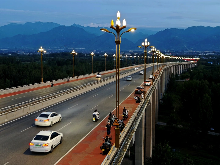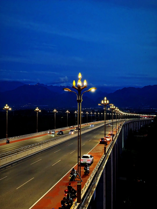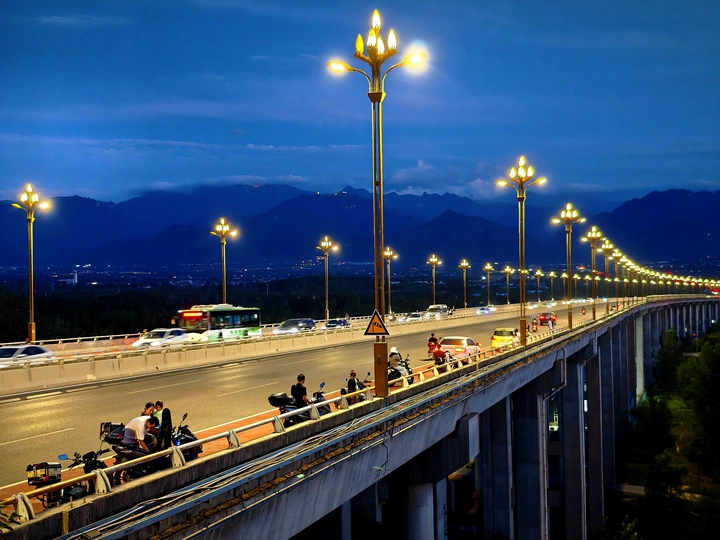 夜幕下的长安滈河大桥