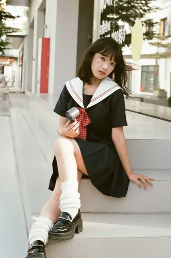 水手服少女和宝矿力水特的碰撞💥 原来是青春甜甜的味道💦 #原图直出 #胶片摄影 #尼康F2 #乐凯C200胶卷 #日系人像