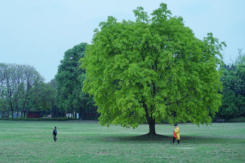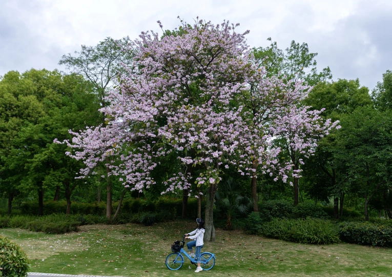 这是让我心动的两棵树,一棵擎起碧云,绿叶婆娑如低语,洒一地清凉,一棵繁花盛放,似粉雾凝枝,风过处,落英翩跹如诗。它们静立时光里,一站成永恒,一站成惊艳。