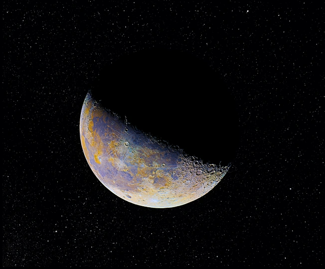 拍了一下残月 坑洼表面藏着蓝紫、金黄的斑斓 像宇宙打翻了颜料盘🎨
