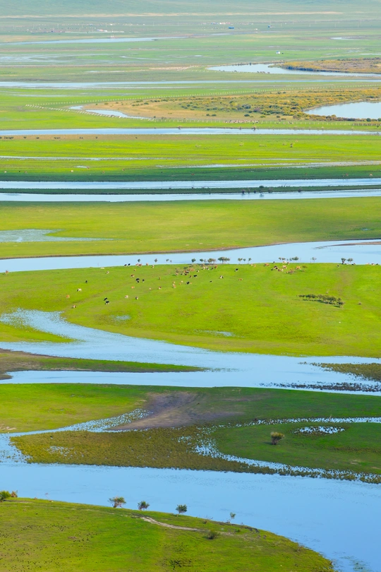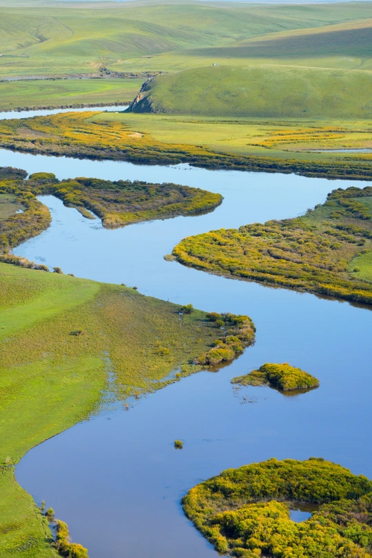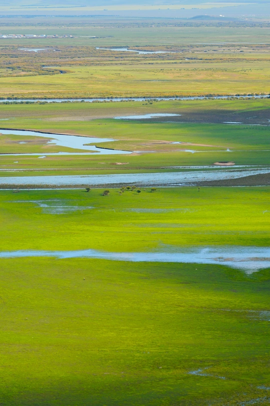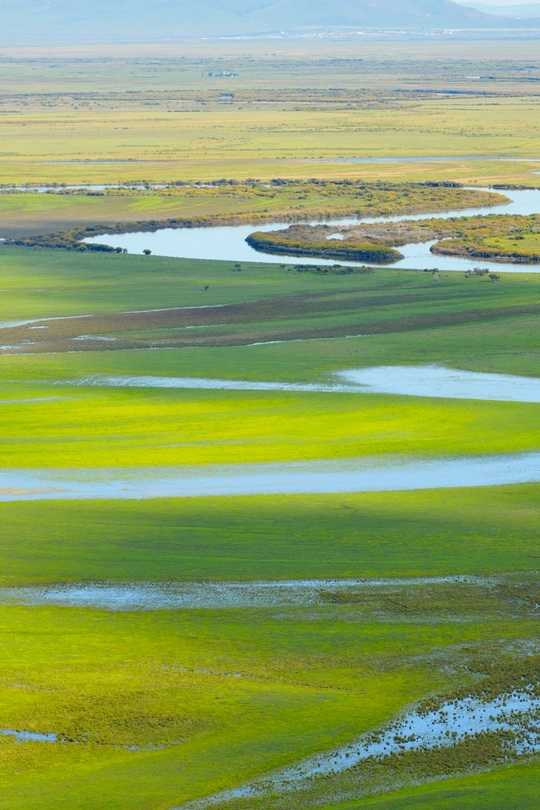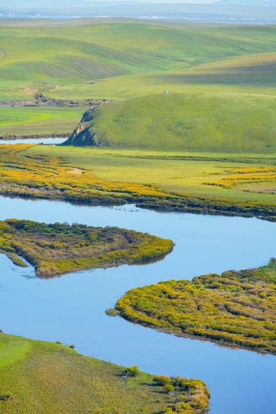 呼伦贝尔边防卡线公路的初秋,黄绿相间的色彩,与光影交错,尽显秋意了。