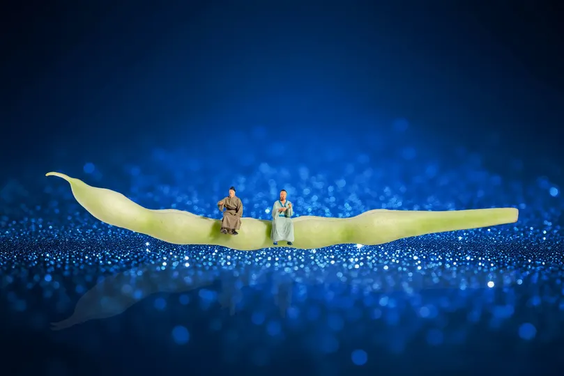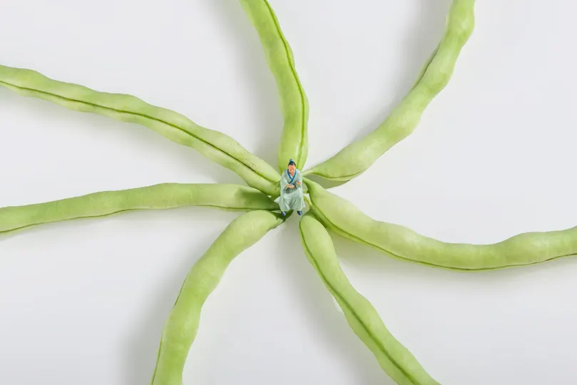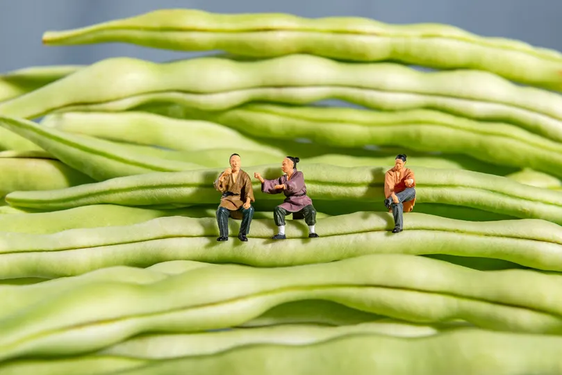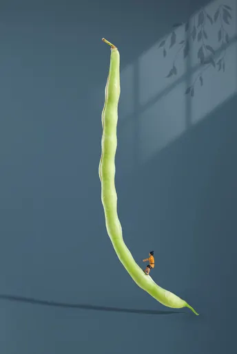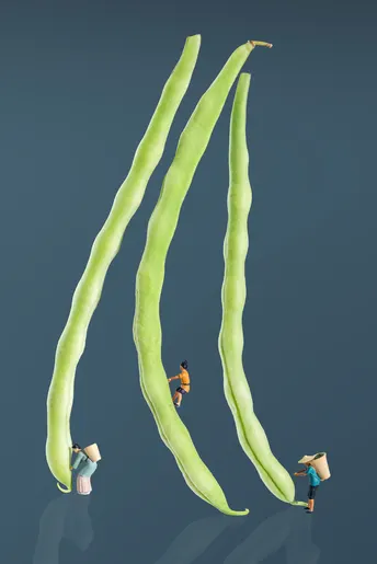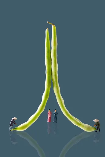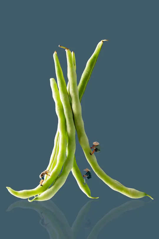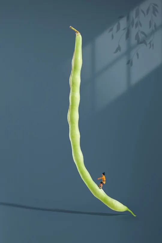 蔬菜微观剧场:豆角与劳作小人创意场景
