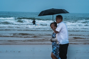 下雨天的海边是什么样子呢?我带着无人机和相机记录下雨中海边的一些瞬间。雨丝斜斜织着,浪头裹着水雾翻涌。人们都做着自己喜欢的事,我也是。