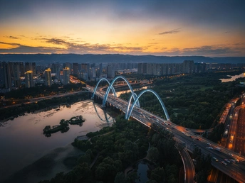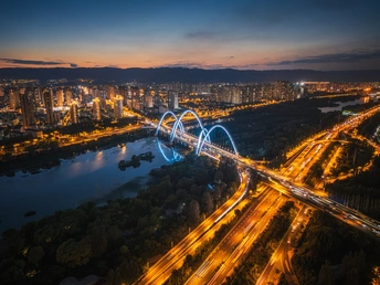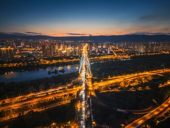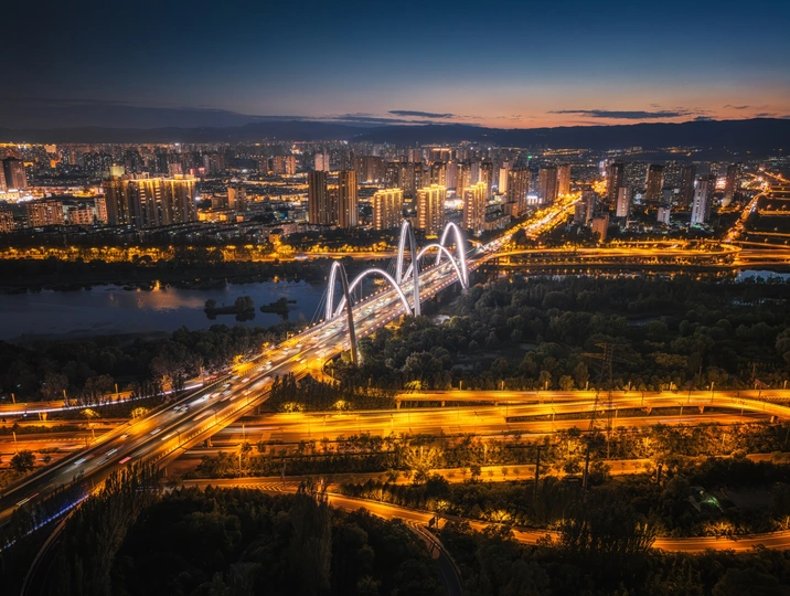蓝调时刻下的北中环桥!