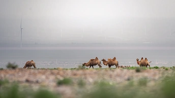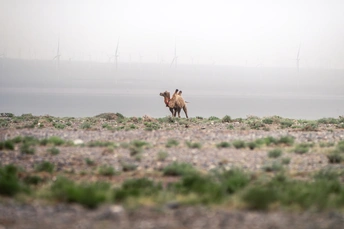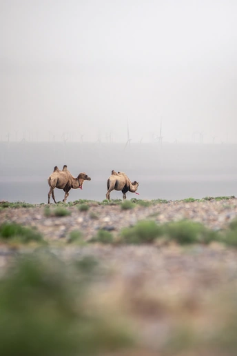 从兰州到张掖丹霞途中阴差阳错绕路了阿拉善盟左旗,在甘蒙边界的307国道上看着车窗外的荒漠慢慢变成了戈壁,在只有直路的西北戈壁,没有驼铃的提醒,就突然发现驼群在地平线边缘出现,更远处的风车诉说着这片荒漠的荒无人烟,在这片土地,活得下去的才是主宰。