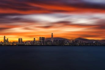 清晨的深圳湾,被绚烂晨曦温柔笼罩。天空如打翻的调色盘,橙红与淡紫交融,流云似被晕染的绸带。对岸的高楼群,在晨光里渐次清晰,玻璃幕墙映着天光,闪烁着蓬勃朝气。海面平静如镜,倒映着这城市的轮廓,仿佛在静静聆听,深圳又一日奋斗与梦想交织的序章,正悄然拉开。