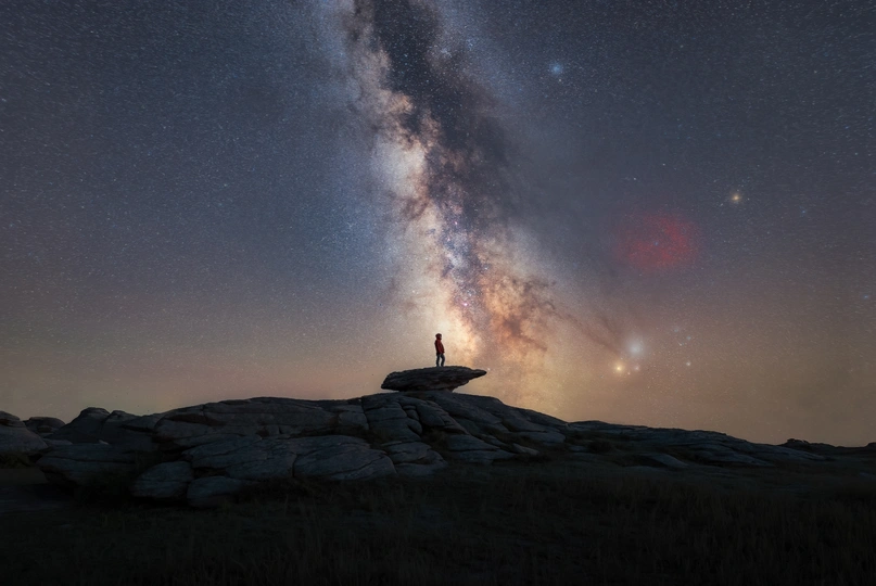 银河倾泻而下,点亮了夜的深邃。一个人,一世界,静坐于天地之间,仿佛与宇宙对话。这样的时刻,让人忘却尘世的喧嚣,只想沉浸在这无垠的美丽中。✨ 或许,我们都在寻找内心的那片星空,无论多远,它始终在指引着方向。