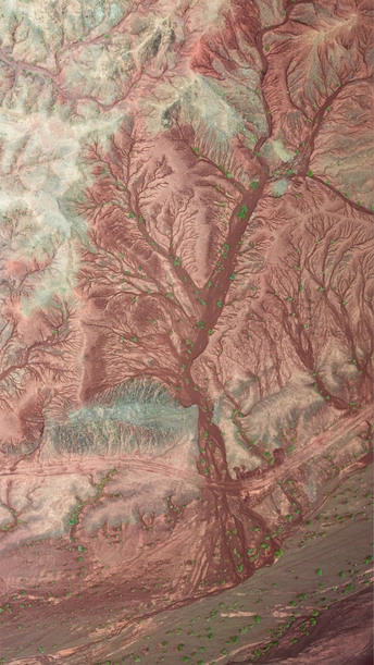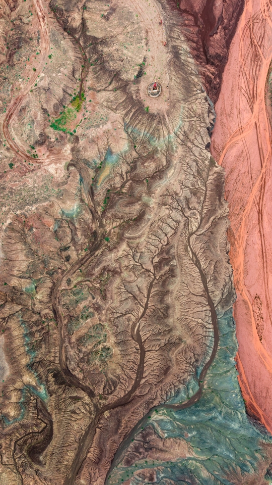 如果你有翅膀,你会在张掖看见,丹霞的沟壑就像大地的血管一般蜿蜒而出的脉络,千万年的风化与侵蚀,数亿年的等待,让我在这青红渲染的丘陵上,看见大地脉络里开出生命的枝桠