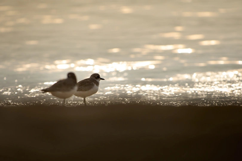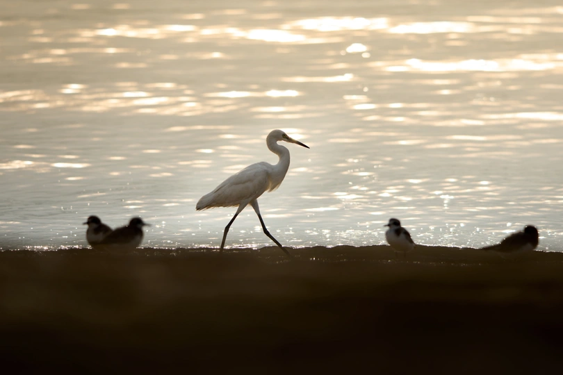 几张朝霞下的鸟儿们