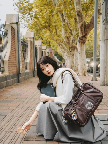 蹲在铺满砖石的路边,指尖捏着片泛黄的落叶,抬眼望去,树木的枝叶也晕着浅黄。秋日的气息就这样悄然弥漫,连带着周遭的一切,都仿佛被染上了独属于这个季节的温柔与静谧。