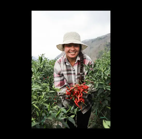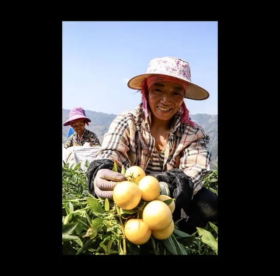 2024年8月,我怀揣着对云南的热忱,意外又惊喜的来到了者米。滇南边陲,红河之南,距金平县城99公里的者米拉祜族乡,如一颗明珠镶嵌在群山之间。它东望勐拉,西连绿春坪河,北依老集寨,南邻越南勐德,85公里国境线蜿蜒而过,既藏着山水的静谧,亦带着边疆的风情。近年来,者米乡以规模化、专业化、标准化为方向,立足山地资源禀赋,充分利用高、中、低海拔地区的地理特征和土壤气候差异,根据不同海拔区域规划布局特色产业,在河坝热区发展朝天椒、百香果、小金豆等产业,打造“河谷冬季果蔬带”;在半山区大力发展冬季人参果、小花糯玉米等产业,冬季人参果与小花糯玉米轮作,实现一片土地“种两季”“两收益”,打造“半山高效产业带”;确保家家有产业、户户能增收,而回溯过去一年,那些顶着烈日行走于田垄山野的时刻,我不仅用镜头见证了边疆少数民族乡村振兴的生动实践,还渐渐发现我与这片土地一呼一吸之间的连接。时值秋分,又是一年中国农民丰收节,丰收的意义不止于一季的收获,更成为你我前行的力量,而丰收的喜悦,你看农人手捧作物那抹上扬的嘴角,藏着最动人的丰收诗!