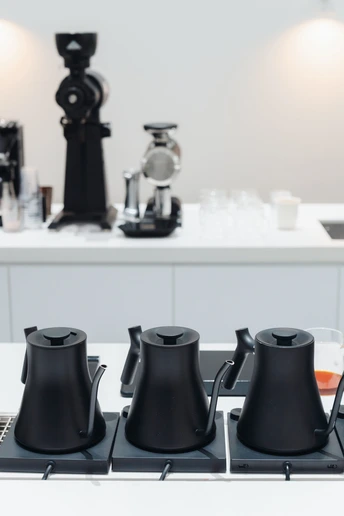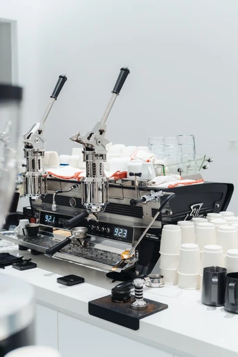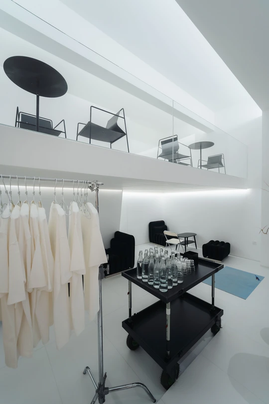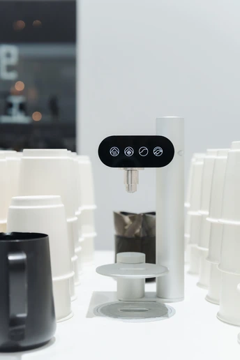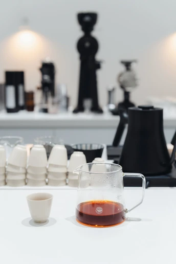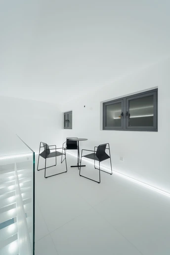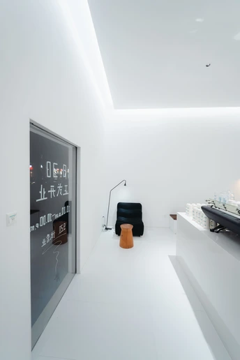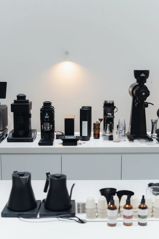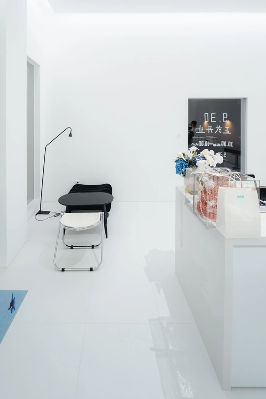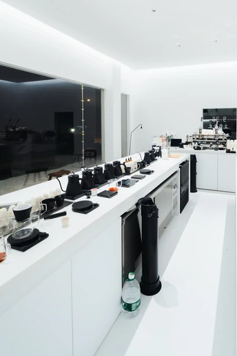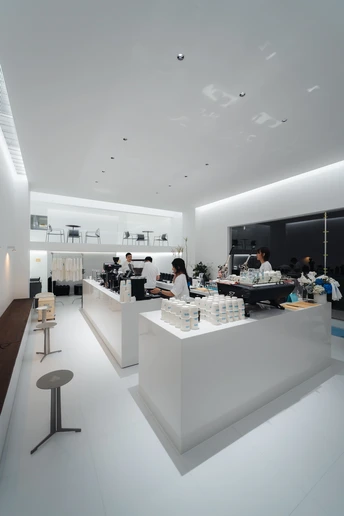 店名叫做SNÖ 如名字一样 里面就像雪花一样白 整体空间很大很通透 店里的留白较多 搭配大多都是黑色的咖啡机和磨豆机 还有黑色座椅 可谓是黑白搭配 从二楼往下看 左侧是手冲出品的吧台区域 右侧是磨豆机和咖啡机依次排放 中间则是一台咖啡机 喜欢通往二楼的楼梯 变换角度来看会有别样的感受 喝了一杯手冲 温度降低之后都没有什么涩感 入口很顺滑 蓝莓风味明显 有空想白天再来拍拍~