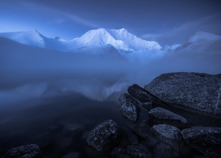 This photo was taken in the Gangdise Mountains of Tibet. We waited in this area for three days. The weather was terrible for the first two days, with hail, heavy snow, and rain occurring one after another, forcing me to take shelter in my tent and wait for conditions to improve. Finally, on the morning of the third day, the mountains emerged from the clouds, the weather cleared, and a churning sea of low-lying clouds drifted over the lake. I captured this serene moment.