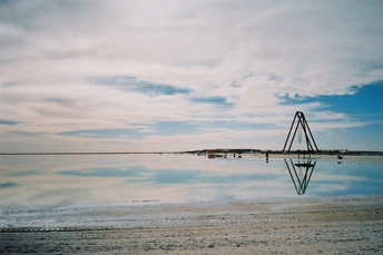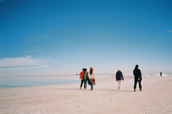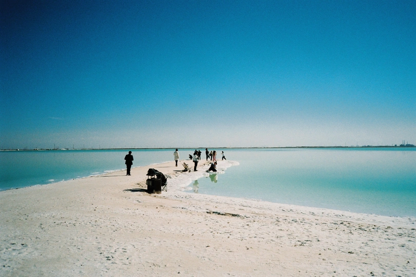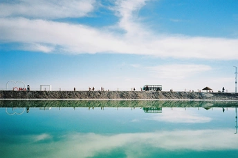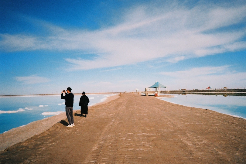 在时光的长河里,我寻寻觅觅,终邂逅了察尔汗盐湖之境。那片湖水,如一块温润的蓝绿色宝石,静静地镶嵌在大地之上,与那片湛蓝的天空深情相拥,诉说着岁月的温柔与宁静。远处,朦胧的工业设施轮廓,像是岁月遗落的诗行,在盐湖的边缘轻吟浅唱。走近些,岸边洁白的盐粒堆积如山,那是大自然精心雕琢的杰作,散发着迷人的光芒。置身于察尔汗盐湖之境,我仿佛成为了天地间的一粒尘埃,被这空旷而纯净的美所包围,心灵也随之得到了前所未有的洗礼与慰藉。 拍摄时间:2025年3月24日 拍摄地点:青海察尔汗盐湖 拍摄器材:柯尼卡bigmini a4 (35mm f3.5)胶片:巨星200 扫描仪:sp3000