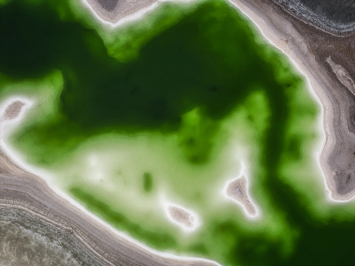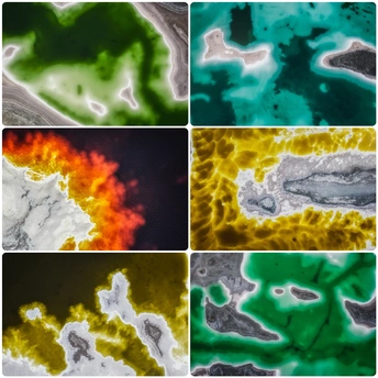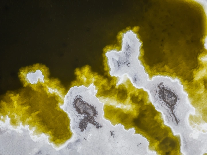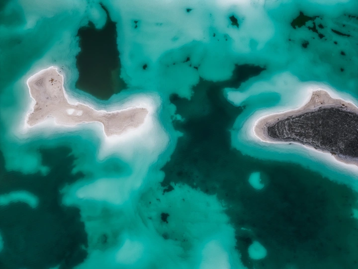 从空中俯视五彩的大柴旦翡翠湖,一切是那么的不真实,像极了梦中的景色