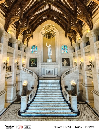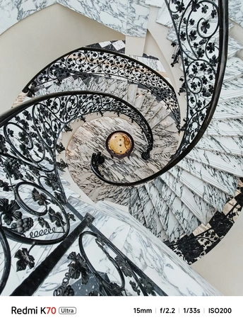 我们在拍摄建筑的时候,总是会找最熟悉的东西作为参照,都会在潜意识里去解读,我们最熟悉的自然是自己的记忆——每阅过一张照片,听过的一支音乐,路过的一段风景,看过的一部电影。 本次拍摄全程使用Redmi K70至尊版,15mm的超广角很容易拍出很有张力的大场景效果,拍摄建筑的外立面是最直观、最集中的体现了。对称,是一种庄重的沉稳美。多拍以对称为构图的照片总归不会出错。对称,给人以秩序的美感。尤其建筑的内部,看让我们目光向上心生畏惧的,实际是高大空间的尺度和惊人的长宽比例。这个时候选择15mm超广角再补充几张46mm的2x拍摄,会比较容易让观者对整个空间有个更为全面的熟悉。 不要吝惜你的快门,多尝试多角度的拍摄;多尝试黑白的光影(去除色彩的干扰,有时视觉会更加集中);多尝试对称构图,包括2x的局部构图;多尝试有前景遮挡的构图方式等,多尝试一定会有意想不到的拍摄哦。