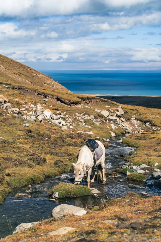 澄澈的湖水是天空打翻的蓝墨,溪流叮咚似自然的私语,连马儿都在这天地间醉了心神~