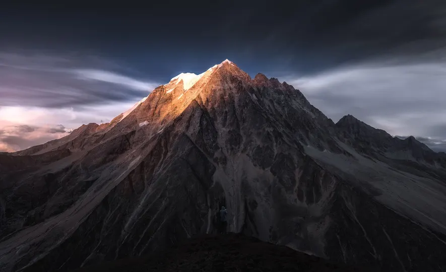 拍摄位置:在云绕雅拉观景平台右边山坡往上爬,走到一段很窄的山脊就到了!(一定注意安全) 拍摄手法:先拍摄人物和地面前景,然后保持机位不动拍摄50张延时用于堆栈云层! 拍摄器材:御4pro(用的一亿像素模式) 后期思路:单独处理天空云层部分,添加光线部位暖色增强光线质感,压暗光源以外的区域降低其饱和度和清晰度!