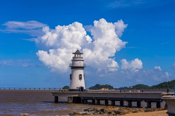 爱情邮局旁的灯塔,一直让我神往。当我终于迎着清冽的海风,晒着炙热的阳光来到近前,心里变得很安定。我心想要是能有个心状的云和它同框就好了。应该很精彩。心想事成就是这样让人不可思议。感谢上帝,过了一会真的有一团云变成了心,而且是一大一小两颗心。哈哈哈,天意啊!