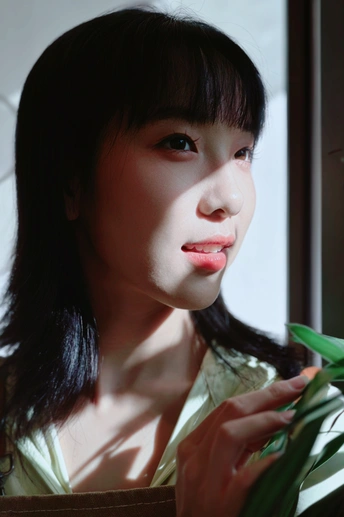 窗边的光分了半阙温柔在她侧脸,发梢坠着绒绒的亮,指尖碰着叶尖的软。风没敲门,却把这帧静,揉成了日子里轻晃的甜。