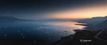 峡湖渔火映霞色