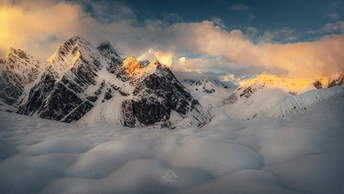 在营地经历了两天暴雪的摧残后,终于等到了那划破云层的阳光,我和同伴从营地深一脚浅一脚,一路冲上山坡,几乎用尽了全身的力气,看着日出的金光,渐渐点亮了云中的珠穆朗卓峰,那一刻我感觉这些天受的苦都值了,一切都值了……