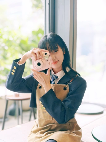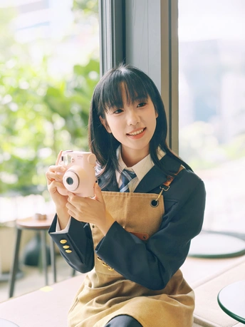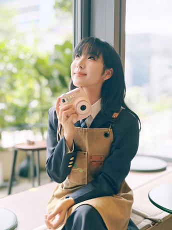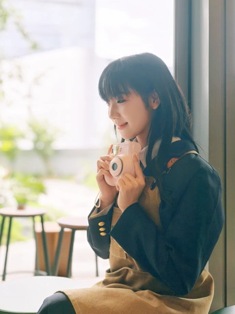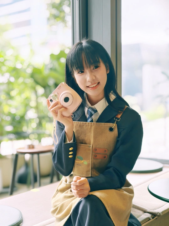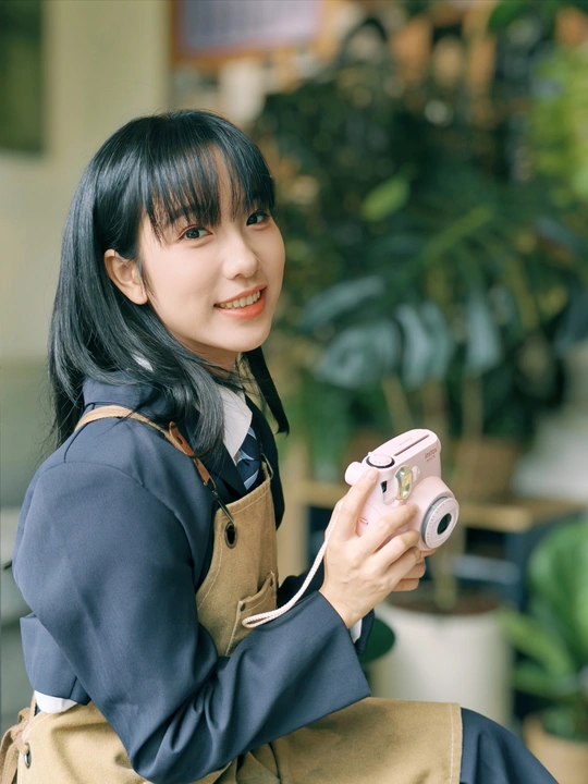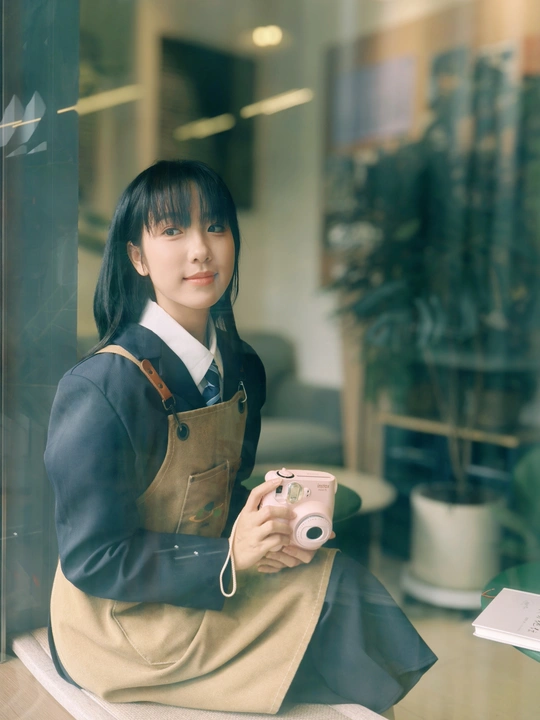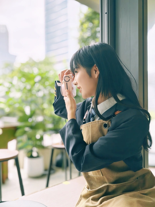 窗边的日光裹着软乎乎的夏意,粉色相机举在掌心,是独属于此刻的温柔取景。裙摆蹭过木质桌沿,镜头里的笑涡,把日常酿成了甜系胶片。