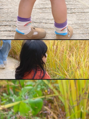 在一条乡间小路的尽头,有一片望不到边的麦田。风一吹,金色的浪头便一波赶着一波,涌向远方。两个小小的身影,是姐姐和妹妹,正深一脚浅一脚地走在田埂上。姐姐在前头开路,像个英勇的探险家;妹妹紧紧跟着,努力踩着姐姐的脚印。阳光把她们的头发染成和麦穗一样的颜色,她们的笑声,则被风偷走,撒满了整个天空。