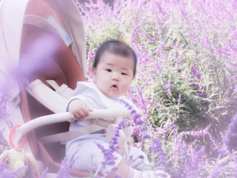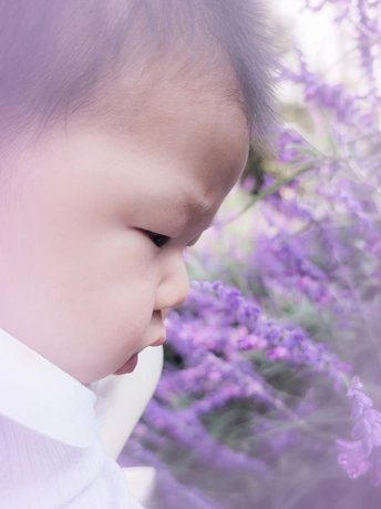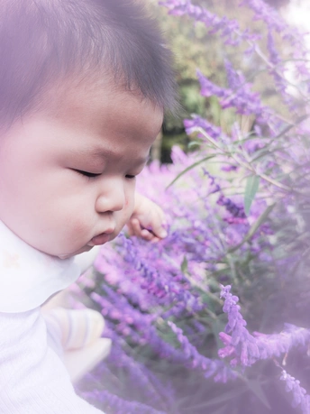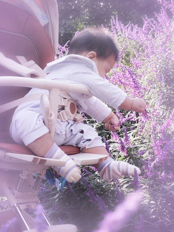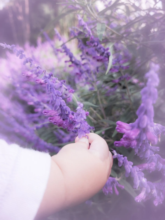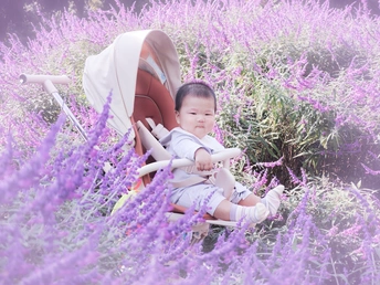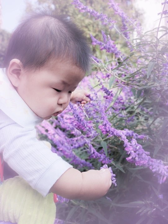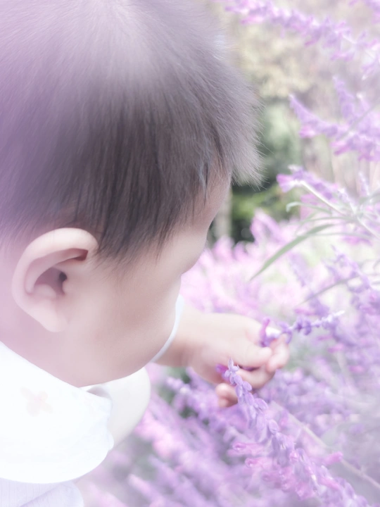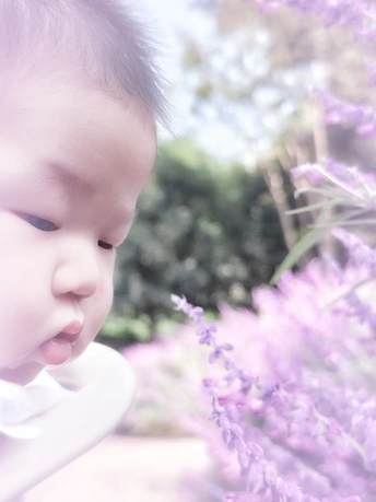 掉进一片紫色的温柔里啦~ 软乎乎的小人儿,正踮着小手和薰衣草说悄悄话 风里都是甜甜的,连空气都裹着奶香味的紫