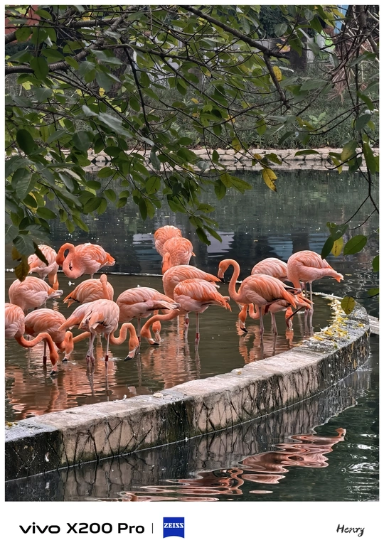 阳光透过树叶的缝隙,落在熊猫毛茸茸的背上,像给它披上了一层金色的纱。火烈鸟在水面上倒映出粉色的梦,小熊猫抱着树枝,把温柔的目光投向你。白虎低头饮水时,影子与水波一起摇晃;河马半沉在水里,只露出憨厚的笑脸。