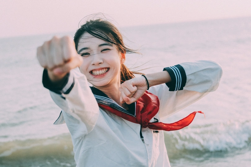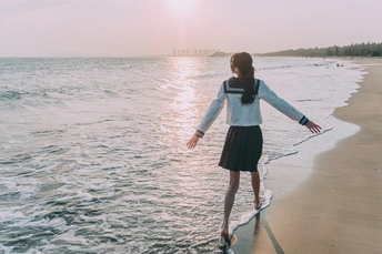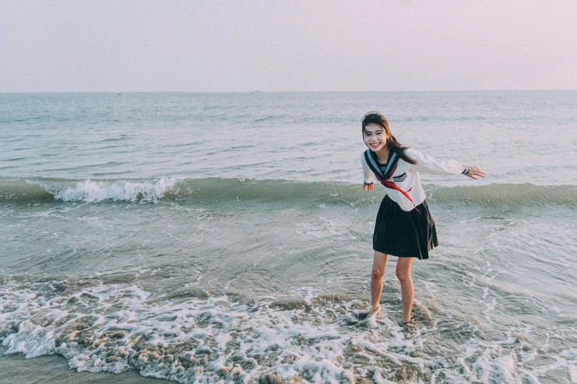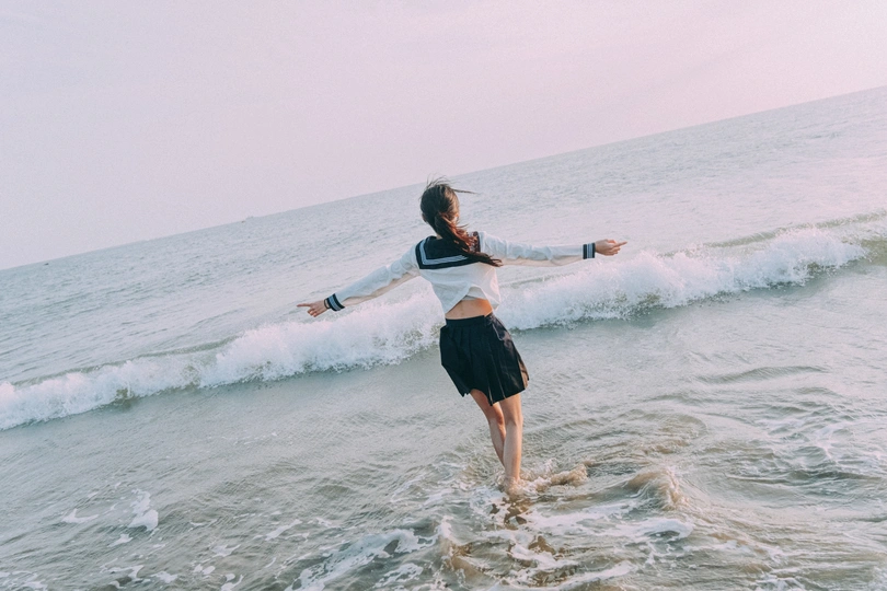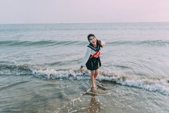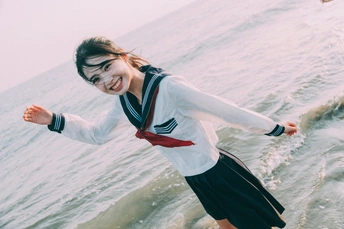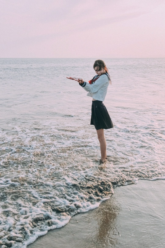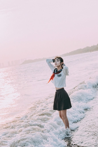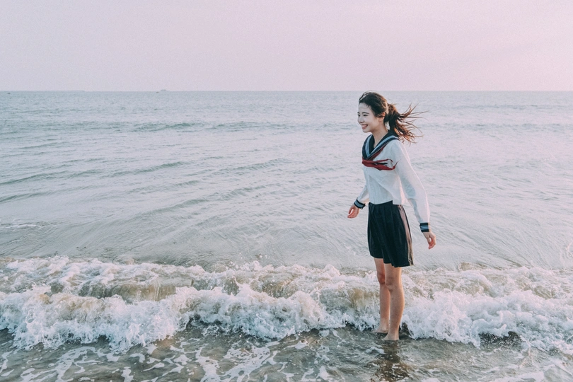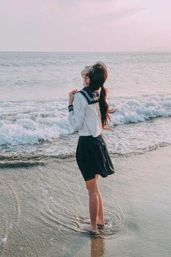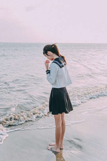 海边与青春撞个满怀~🌅 穿上JK制服奔赴一场与大海的约会, 海风把裙摆吹得扬起, 海浪将脚印悄悄收藏, 每一帧都是日系电影里的画面。 原来青春可以这样热烈又温柔, 像傍晚的海, 既有波光粼粼的明媚, 也有潮汐涌动的肆意。 #JK制服 #海边写真 #青春氛围感 #摄影日常 #日系少女 #小红书摄影 #把生活拍成电影