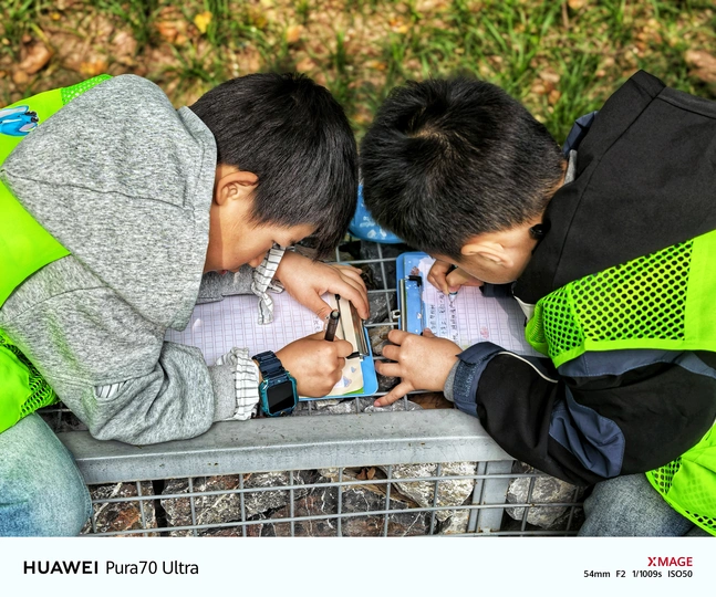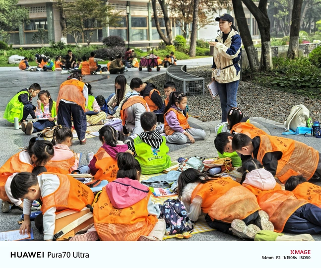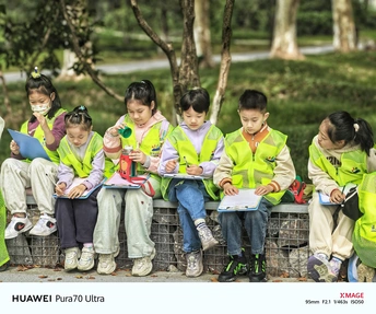 #祎璠纪实# #手机365-3287# 在公园的自然课堂里,身着鲜亮背心的孩子们,或专注端详着秋日的场景、或专注琢磨着植物奥秘,或围坐聆听老师讲解,将秋景、落叶、石块化作探索自然的钥匙。他们以纸笔为媒,在绿意间书写对世界的好奇,让户外课堂成为成长的乐园,每一笔都是与自然对话的童真印记。