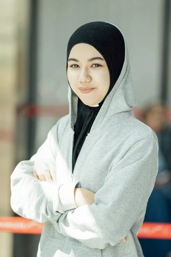 在阿斯塔纳给像“邓紫棋”的小姐姐拍照
