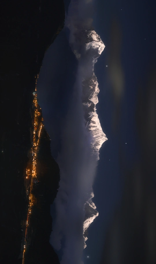 有人说,梅里的星空是离天堂最近的光。 而我却在这一夜,看见了雪山与人间灯火的相拥❄️💡 当墨色浸透天空,卡瓦格博峰披着月光矗立眼前, 雪顶泛着幽蓝的微光,像神祇洒下的碎银。 山脚下错落的灯火,仿佛是散落人间的祈愿, 温暖了寒夜,也模糊了仙境与尘世的边界。 📸 凌晨4点守候的瞬间, 风刺骨,但心跳与快门同频—— 这不仅是风景,更是一场灵魂的共振。