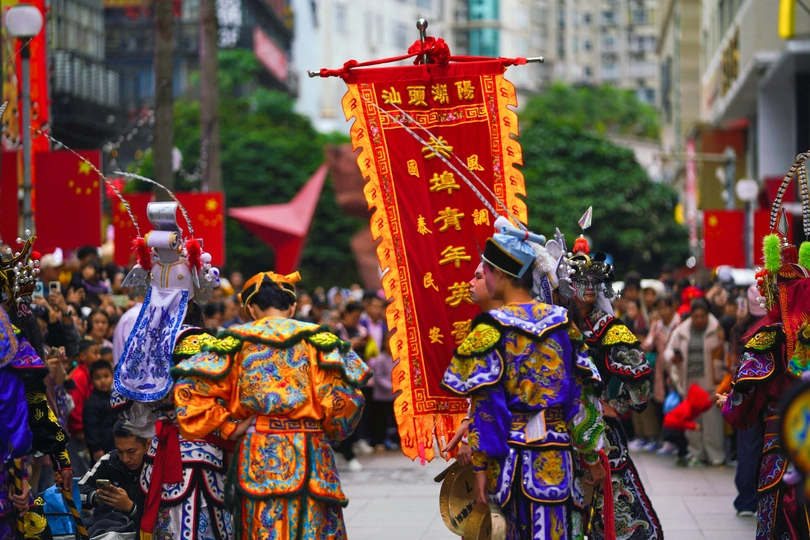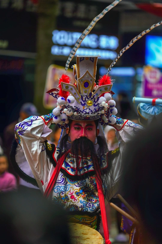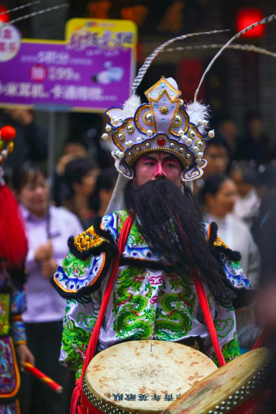 传统上,英歌舞主要在春节期间、游神赛会时表演。人们相信这种充满阳刚之气的舞蹈可以驱除邪祟,带来新一年的好运和吉祥。 · 团结与力量的象征:它体现了潮汕人团结协作、勇敢刚毅、勇于拼搏的精神面貌。 · 非遗地位:2006年,潮阳英歌舞被列入第一批国家级非物质文化遗产名录,其文化价值得到了国家的正式认可和保护。 · 破圈与创新:近年来,英歌舞在互联网上爆火。其强大的视觉冲击力和“热血”感吸引了大量年轻人。它也开始与流行文化结合,例如: · 在动漫展、音乐节上表演。 · 与游戏、动漫IP联动(例如,有玩家将其与《王者荣耀》等游戏角色联系)。 · 动作和音乐被进行现代化改编,使其更具时尚感。 总结来说,英歌舞不仅仅是一种舞蹈,它是潮汕文化的一张闪亮名片,是流淌在潮汕人血液中的英雄情结和集体记忆的体现。当那铿锵的棒击声和雄壮的呐喊响起时,你感受到的是数百年来不变的豪迈与激情。 11月9日我在广西柳州的五星步行街拍到了前来表演的英歌舞。