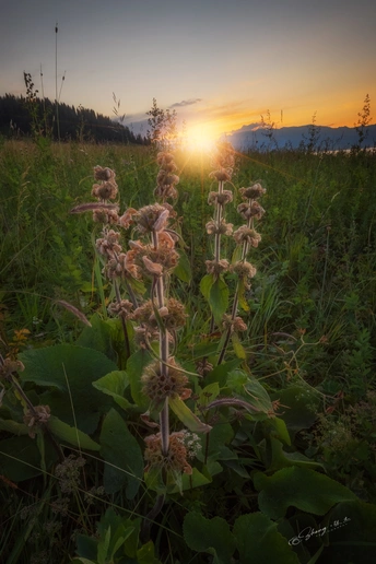 野花在夕照里披着鎏金的纱,每个花瓣都裹着暮色的温柔……