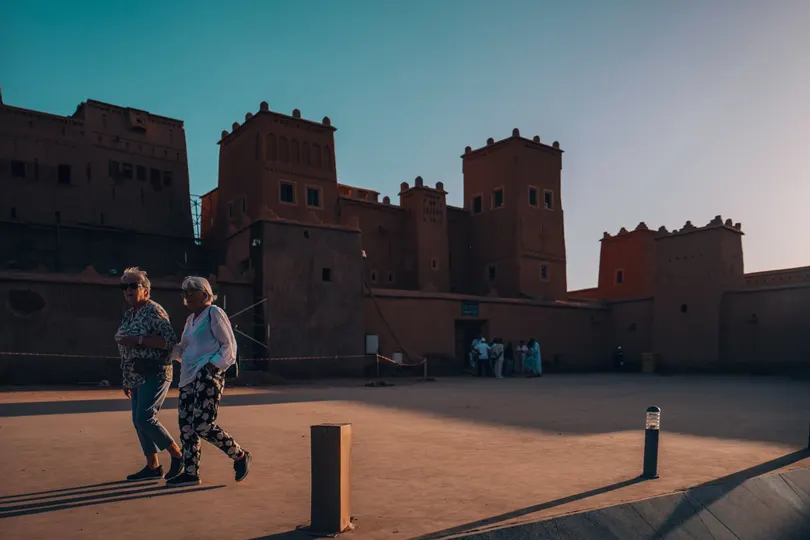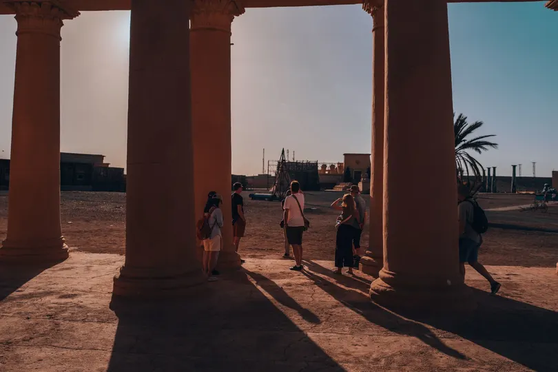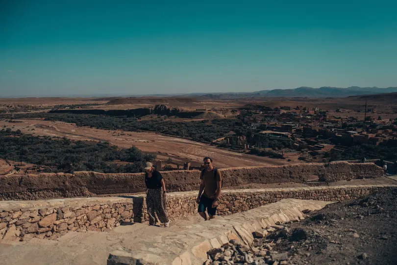 继续,阿伊特本哈杜筑垒村是进沙漠必经之村,它是摩洛哥柏柏尔人最具代表性的古村落。位于摩洛哥南部阿特拉斯山脉中的一个小村。始建于公元8世纪,是世居于此的柏柏尔人为抗御流寇劫掠而修造的防御型居住区。1987年联合国教科文组织将其载入《世界遗产名录》。