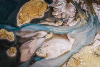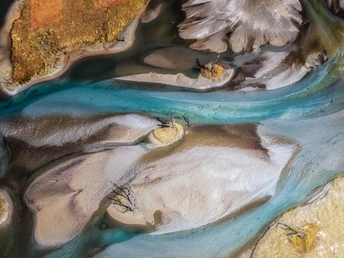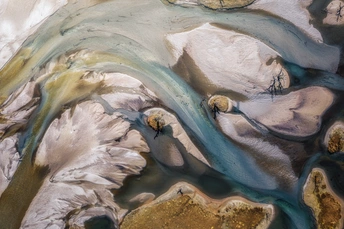 在双桥沟的四姑娜措,水流将地面冲刷出了一道道宽窄不一的“痕迹”,从空中俯视,不得不感叹大自然的神奇