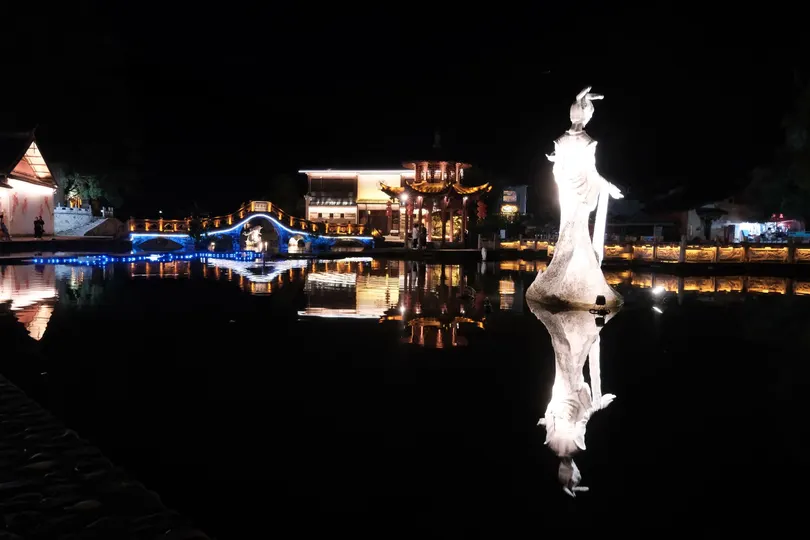 今年福州虽然凉快了点,但周末还是忍不住逃去避暑圣地——宁德周宁。 一下车,气温直接降到26℃,整个人都松快了下来! 第一站就去到了鲤鱼溪公园。周宁县城区最出片、最有烟火气的地方非它莫属。虽是夏末,但池塘里的荷花依旧盛放,栈桥、凉亭、建筑错落有致。中午时分阳光温柔,荷花在风中轻晃,拍些小景真的很出片。 ?夜幕降临鲤鱼溪水面平静如镜,村落灯笼和古街倒映其上,伴着晚风,凉意沁人心脾,夜拍氛围感拉满。 ?️免费开放,有多个入口直通,不用门票! ☀️虽然气温不高,但海拔较高,紫外线强,一定要注意防晒!我已经晒伤了? ?富士X-T50+16-80mmF4