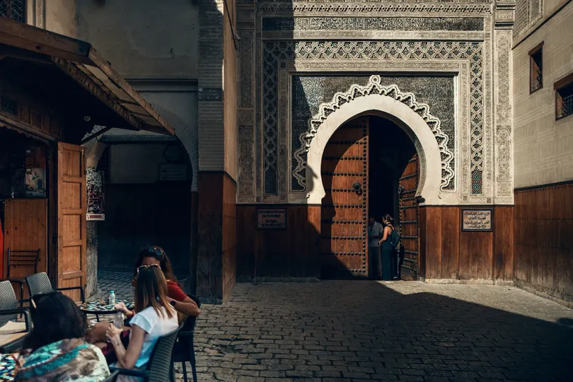 穆雷伊德瑞斯陵寝和娜塔琳水池(外观):穆雷伊斯梅尔陵墓不只是个陵寢,同時也是唯一给非伊斯兰教徒参观的清真寺。 皮革染色作坊具有近千年历史。摩洛哥的皮革制造业还是很有名气的,也是当地旅游的一景之一。布日卢蓝门又被简称为蓝门,它处于古城中两条最重要道路的起点,因此大多数游客都会选择从这里进入菲斯老城。卡鲁因清真寺:卡鲁因大学是世界上最古老的大学,也是非洲最大的清真寺之一。