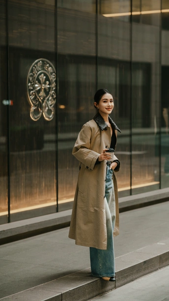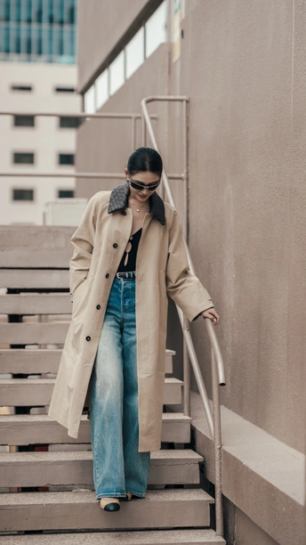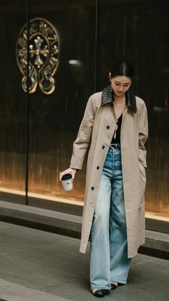 卡其色长风衣永远是都市丽人的底气,阔腿牛仔裤是显瘦利器,宽松廓形对身材包容性MAX,里面随便叠穿也不会臃肿,内搭的若隐若现的小性感,不夸张但足够吸睛,职场里的克制和下班后的松弛平衡得刚刚好,职场焦虑瞬间清零。