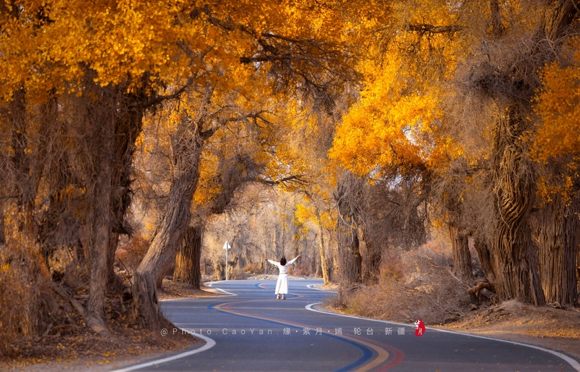 📍新疆·轮台胡杨林 当轮台的胡杨把秋光熬成金箔,风一摇,就落满径。扬手接住南疆的秋意——原来秋天不止有离别,还有胡杨把三千年的岁月,酿成此刻的灿烂。。。