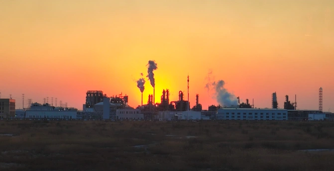 🏭 工业区的黄昏,有一种硬核的浪漫。 当夕阳为冰冷的钢铁镀上金边,连烟囱都开始为黑夜点燃一支巨大的“雪茄”。