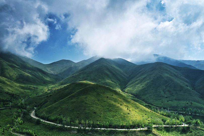 爬屈吴山时,云层正把天空撕成蓝白相间的绸缎。我在山径上喘着气抬头,看见云絮从山尖漫下来,像给青绿色的山峦盖了层半透的纱。风过处,云缝里漏下的光突然泼在草坡上,山路瞬间成了银丝带,缠得整座山都像在呼吸。后来才知道,屈吴山的云总爱这样“捉迷藏”——等你快累瘫时,它就掀片云,把藏好的青山和阳光一股脑亮给你看,像山野偷偷递来的糖。