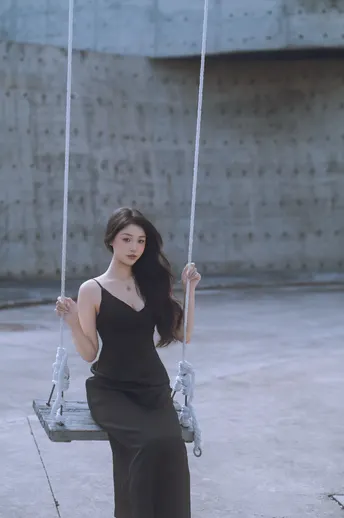 一身黑色长裙是秋千上的沉静诗篇📖 极简黑灰调的高级氛围感♠️