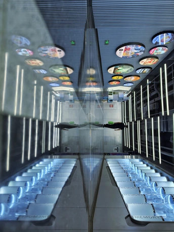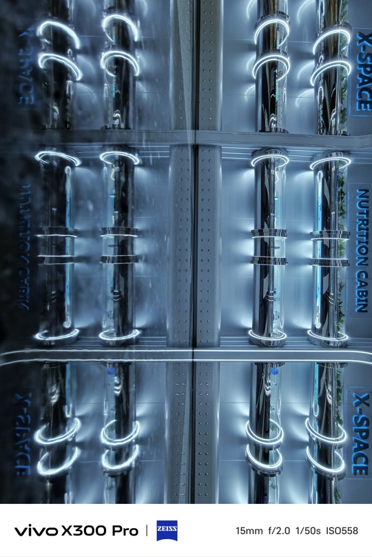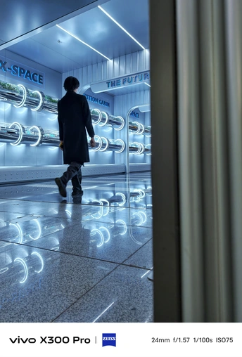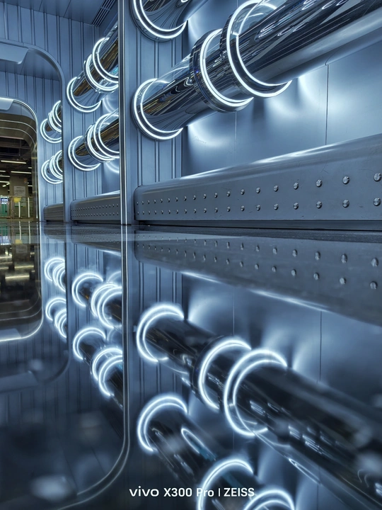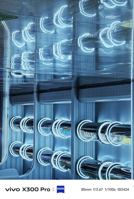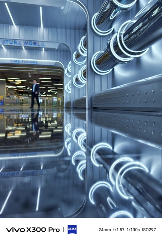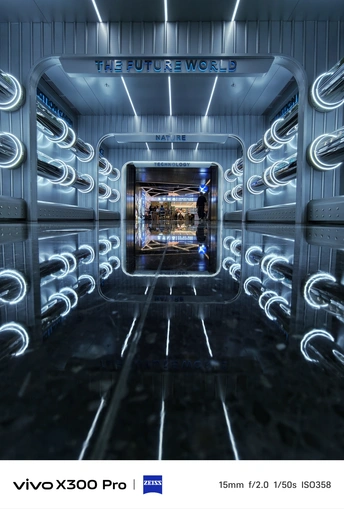 坏了,这个你可以拍的出来 蓝调灯光把走廊折成无限回廊, 地面把空间折成两个时空。 你往前,光往后, 每一步都踩在现实与镜像的未来里。 调色参数仅供参考👇 色温:-29 锐化:+3 清晰:+5 去雾:+5 增强:+5 🔵Shot on vivo X300 Pro